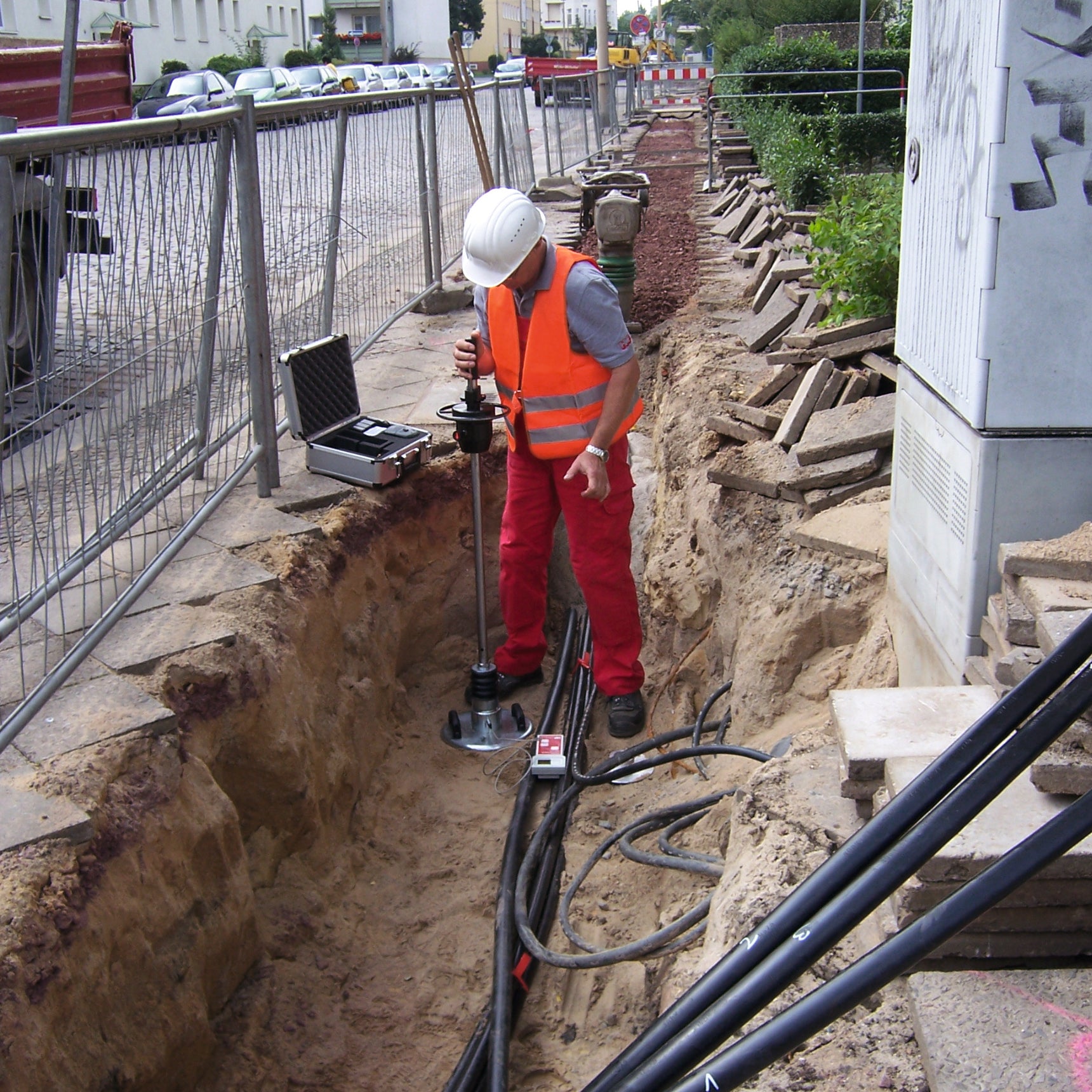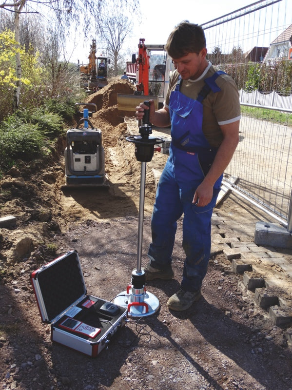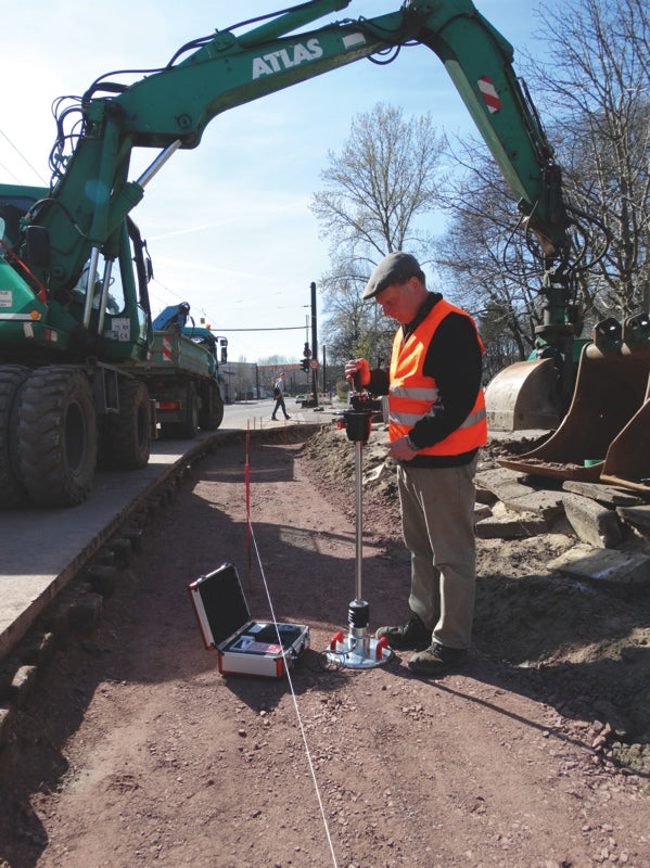 The HMP LFG light drop weight tester enables a quick determination of the load-bearing capacity and compaction quality of soils and base layers . The dynamic plate load test is particularly suitable for compaction control in utility trenches and can be used without load abutments in hard-to-reach places. It is used in road, track and earthworks as well as in paving bedding and foundation backfilling.