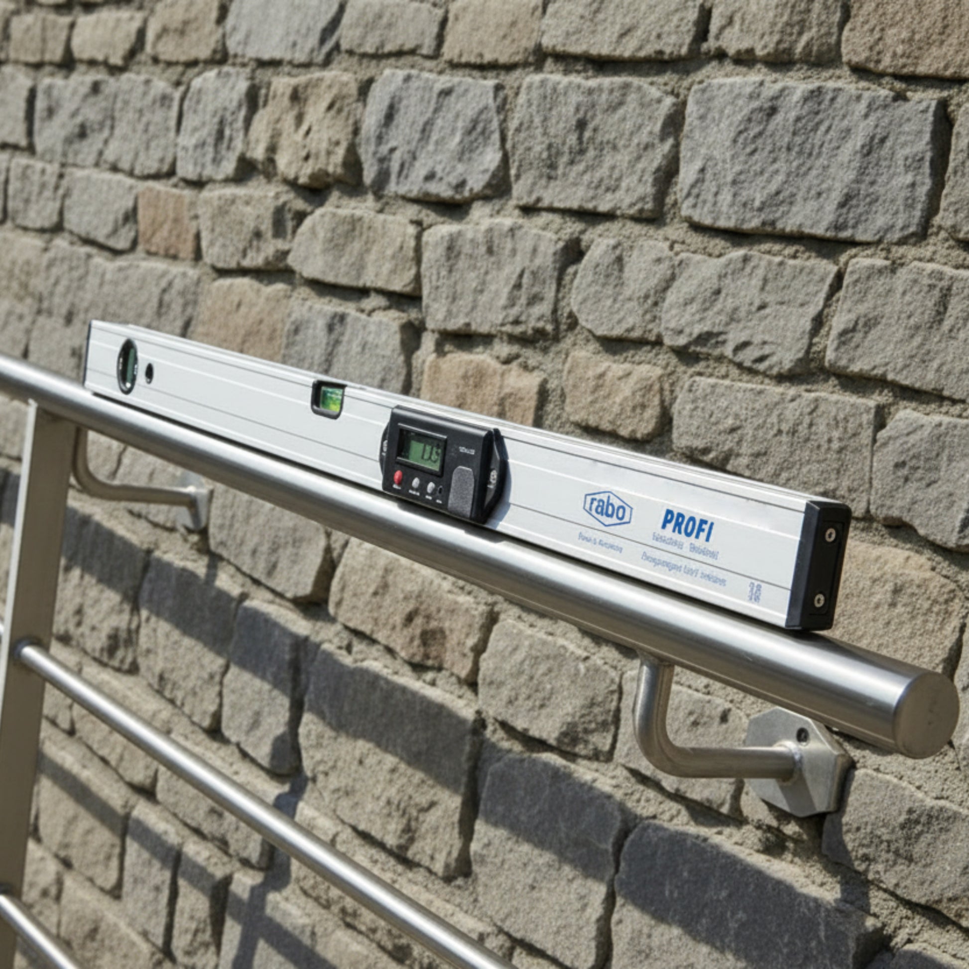 Rabo electronic inclination spirit level offers an impressive accuracy of 0.05° and a resolution of 0.05°. The measured values are displayed in degrees, percent, in/ft and mm/m. The self-reversing display guarantees optimal readability - even when working in different positions. This allows objects to be aligned exactly horizontally or vertically or any inclination, gradient, slope and angle to be determined precisely.