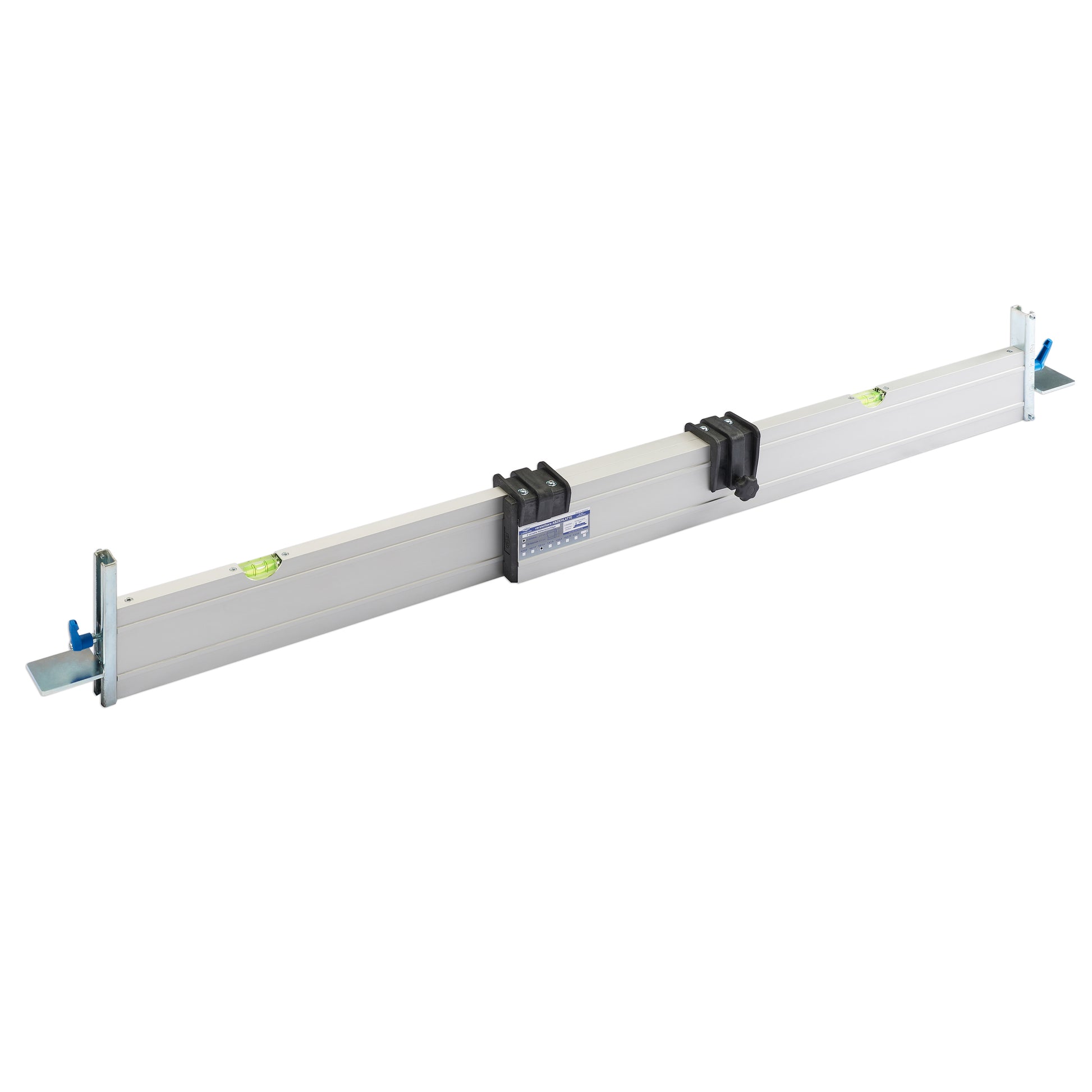 The rabo continuously adjustable leveling bar for outdoor use stands for professional quality “Made in Germany” and impresses with its extremely stable multi-chamber hollow profile made of natural anodized aluminum.